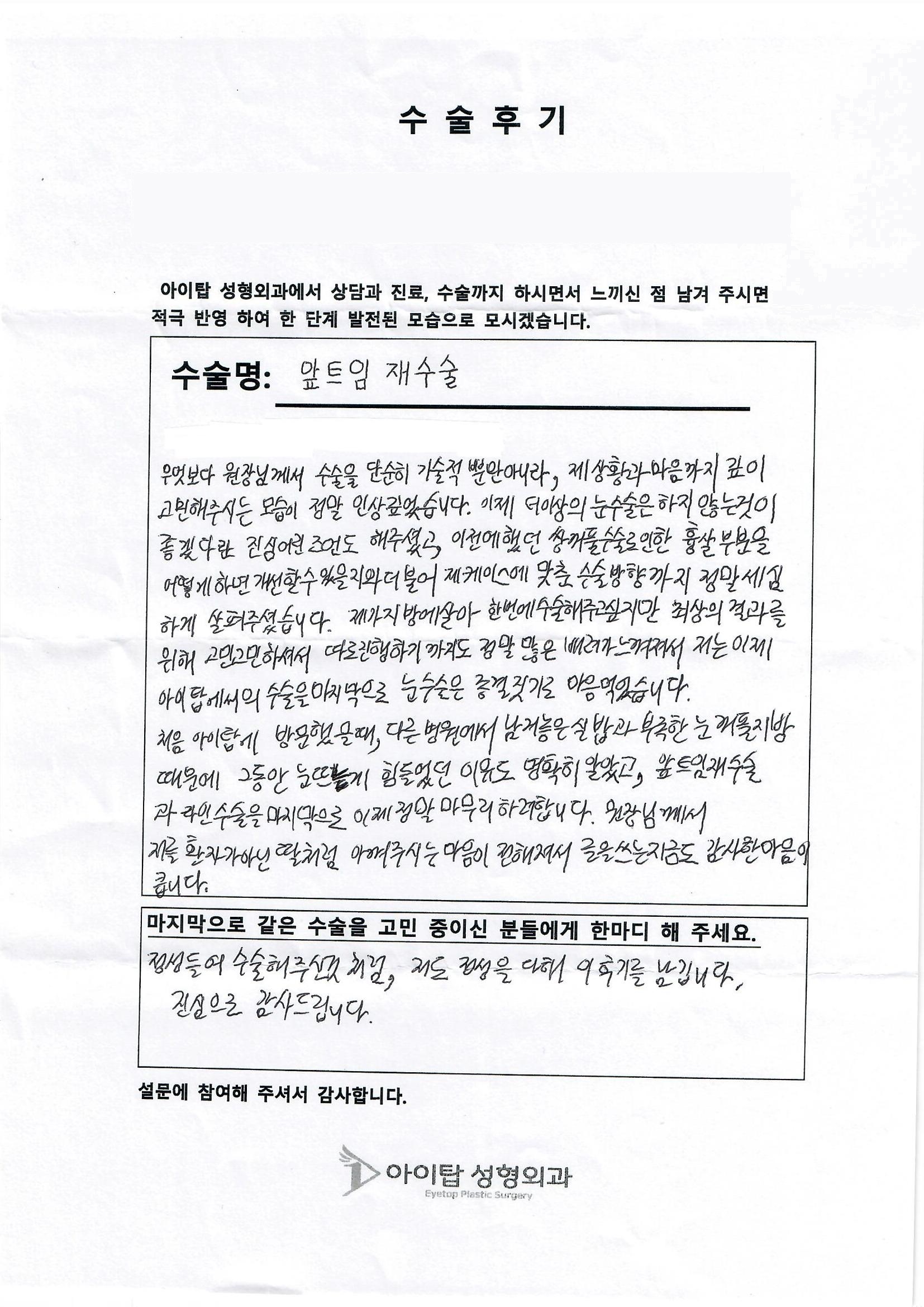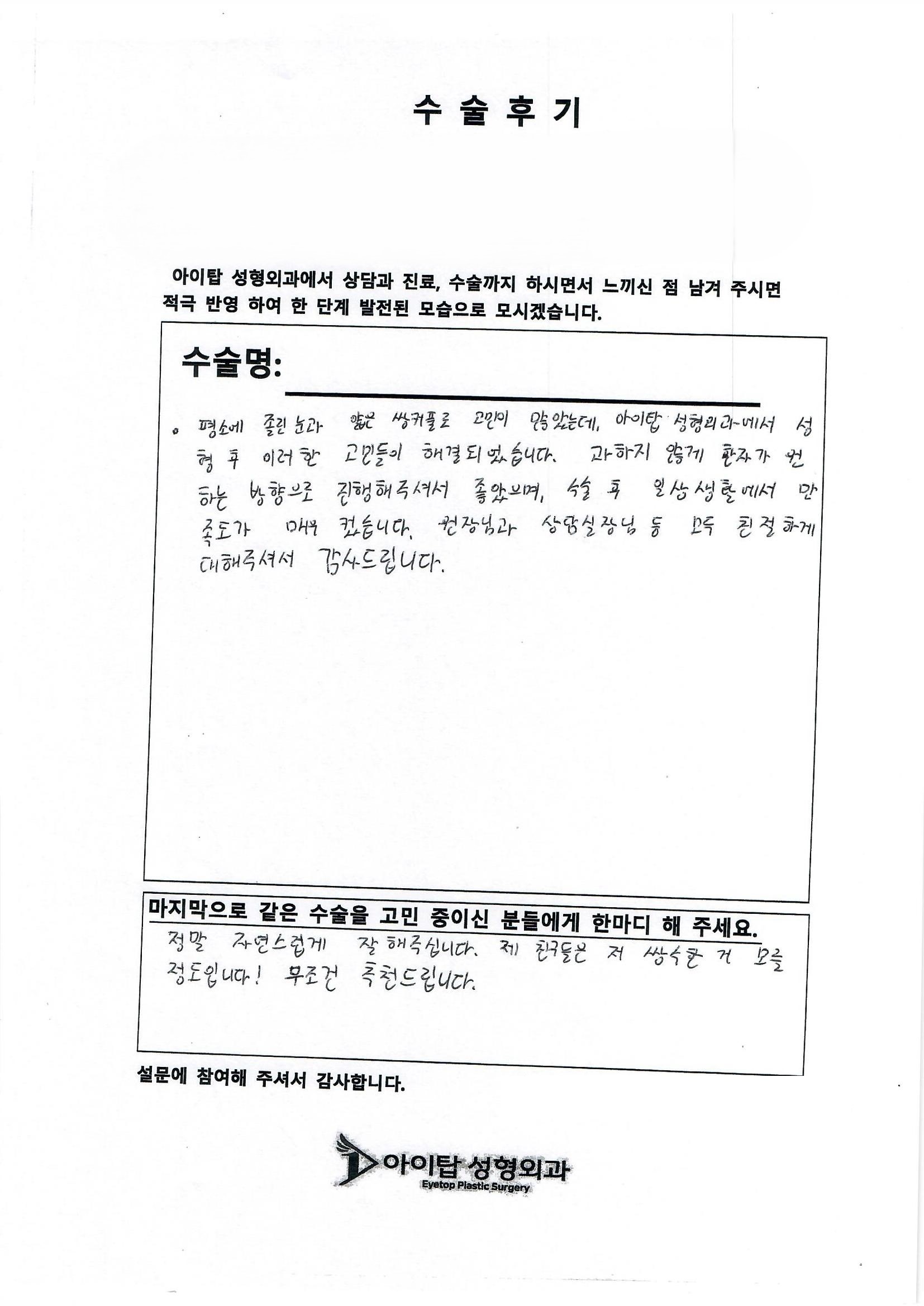 아이탑에서 수술 받으신 분들의 꾸밈없는 리얼 수술후기