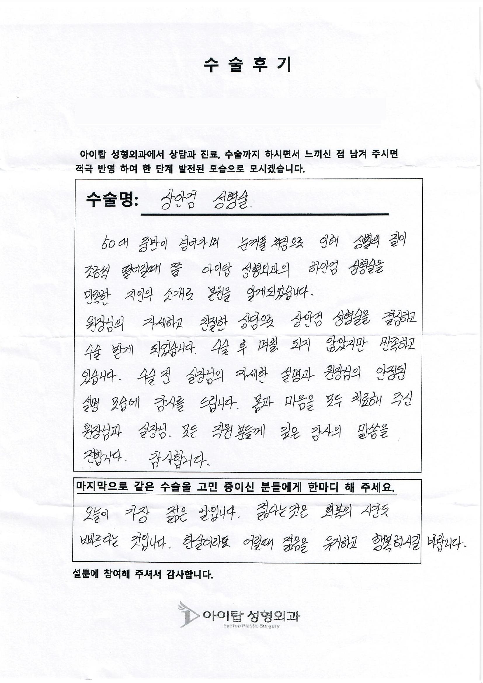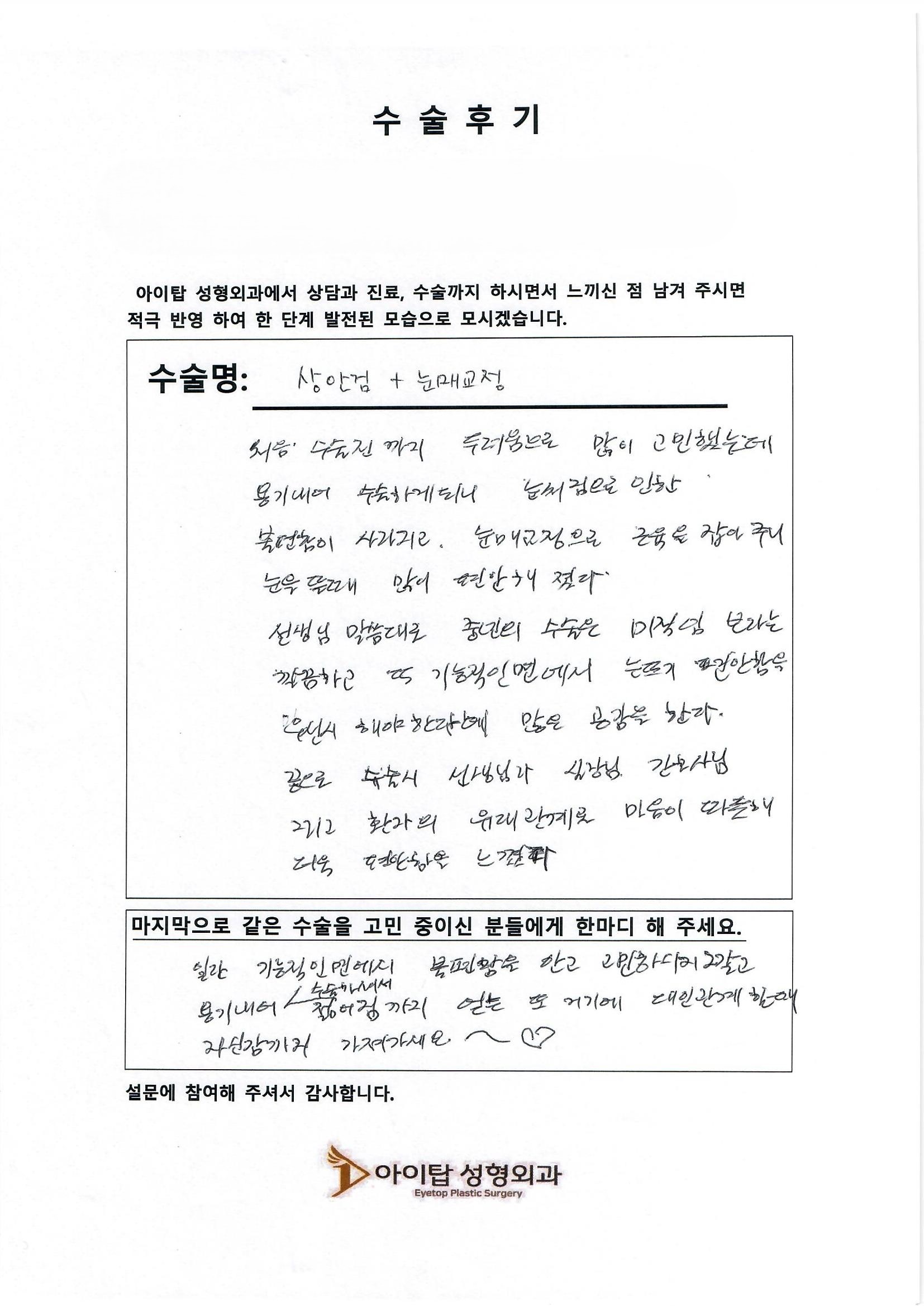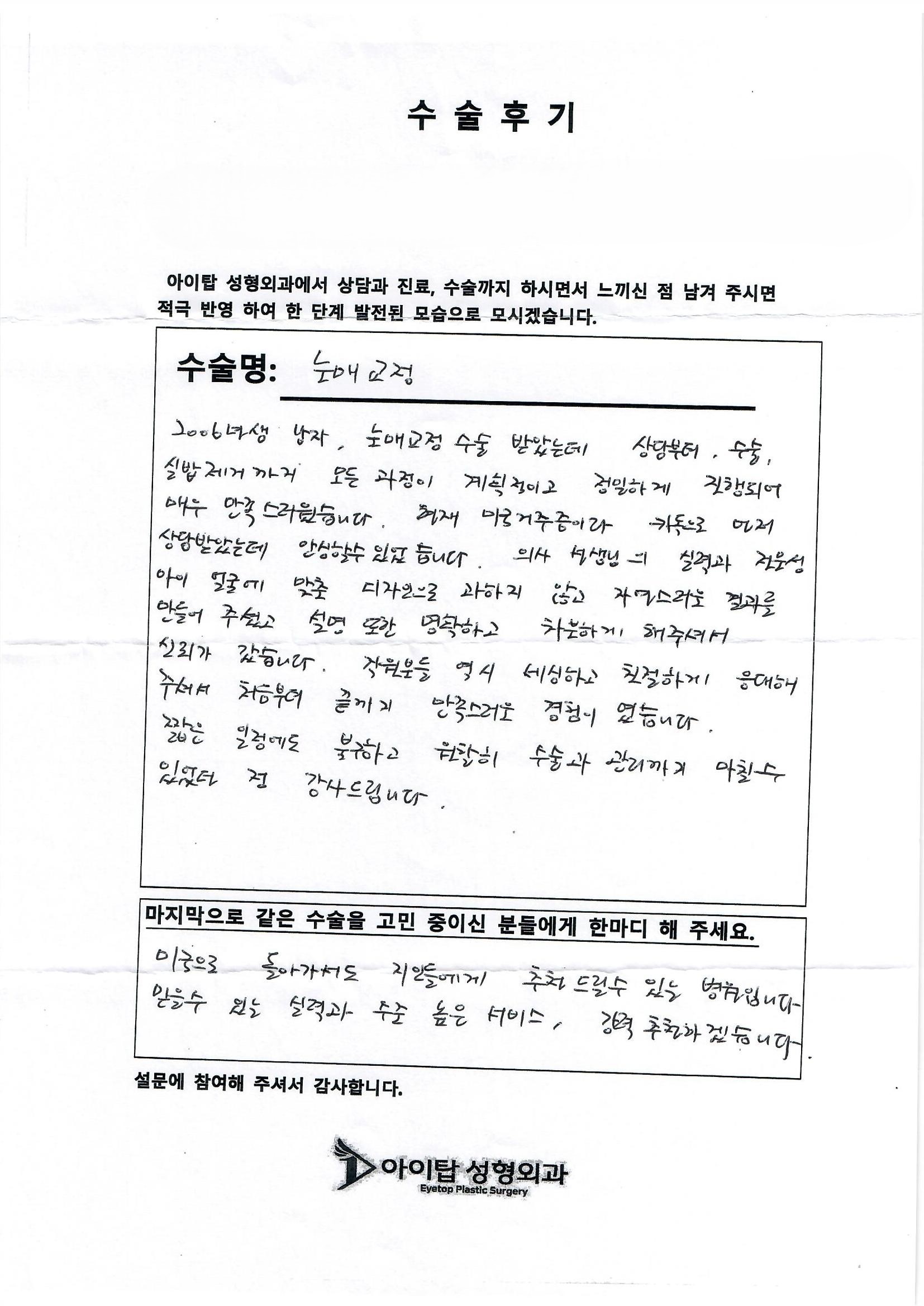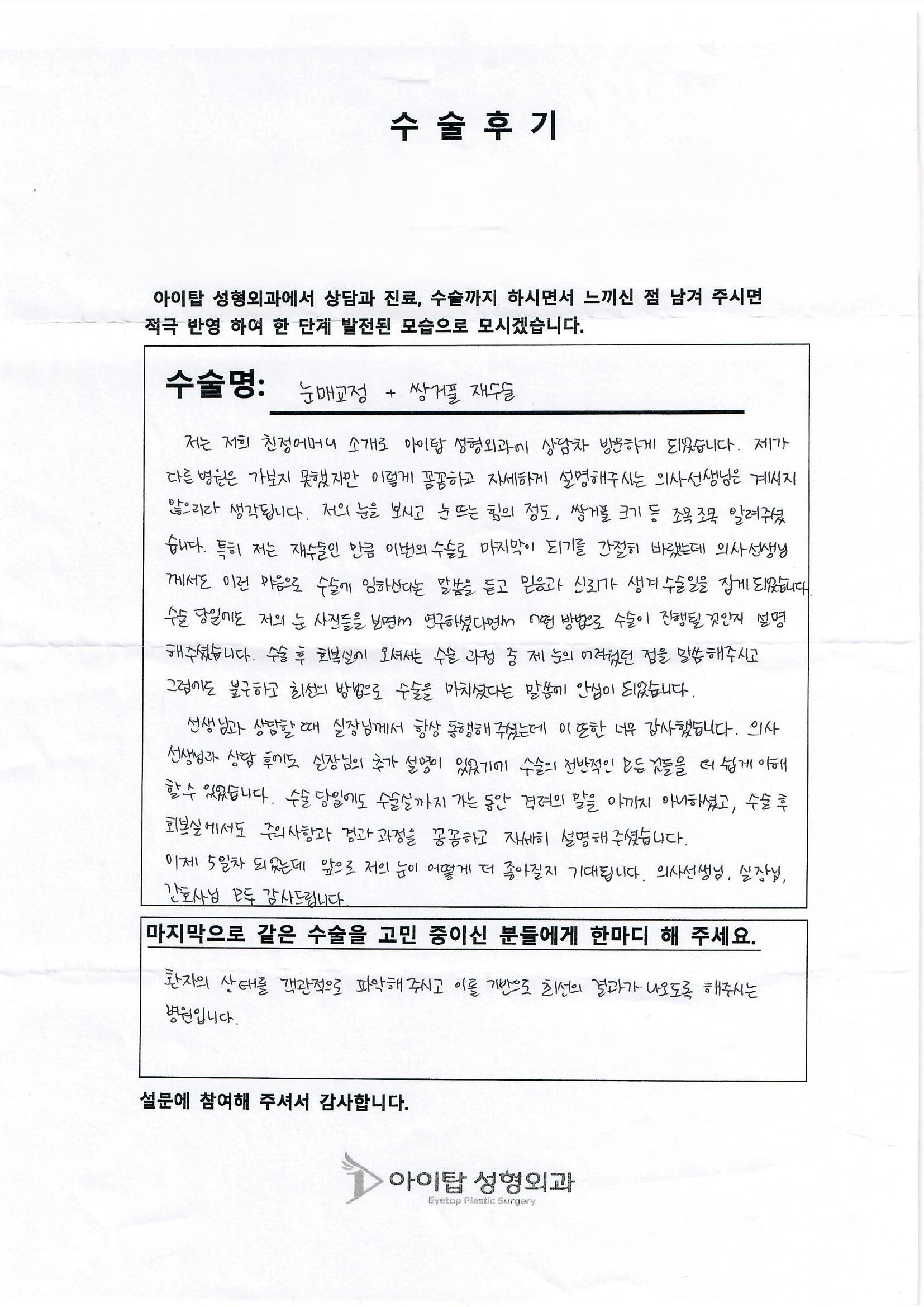 아이탑에서 수술 받으신 분들의 꾸밈없는 리얼 수술후기